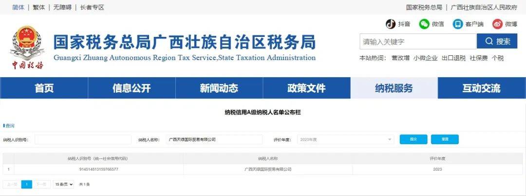 近日,國家稅務(wù)總局公布了2023年度納稅信用評價(jià)結(jié)果,天緣綠集團(tuán)母公司——廣西天緣綠生物科技有限公司及子公司——廣西天綠國際貿(mào)易有限公司憑借卓越的納稅信用表現(xiàn),雙雙獲評“2023年度納稅信用A級納稅人”。